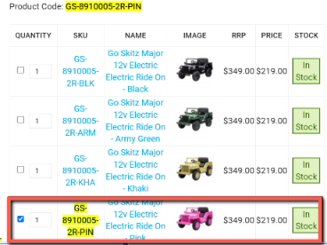 Search for the product using the SKU, make sure the item is in stock before proceeding.
