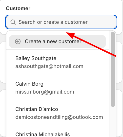 Enter the customer details / search for the existing customer’s name.