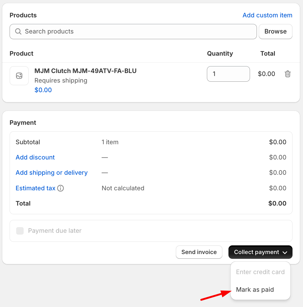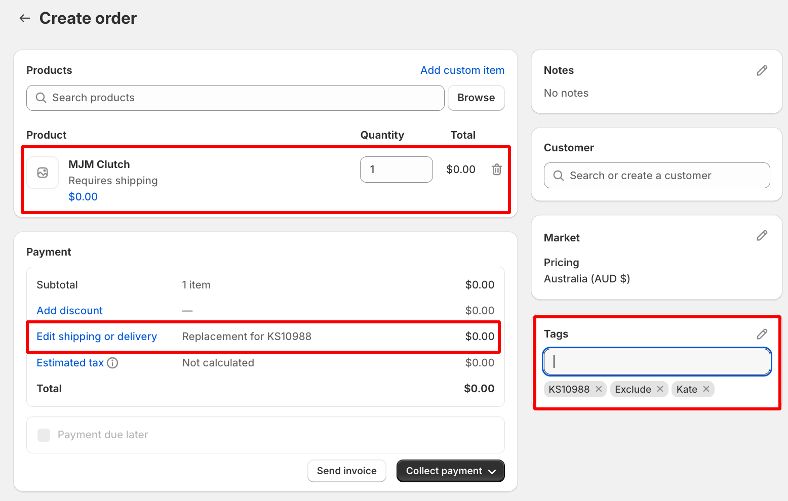 Mark the order as Paid if the customer doesn’t need to pay for the replacement part under warranty/faulty.